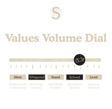 Think about your values on a volume dial. How would your employees perceive your individual values on this dial in their day-to-day?